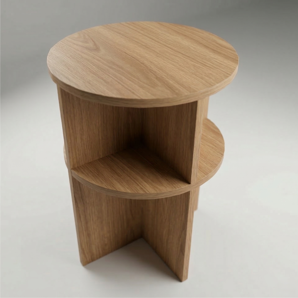 El tamaño justo para tener lo esencial a la mano — una lámpara, un libro, tu café — sin invadir el espacio.