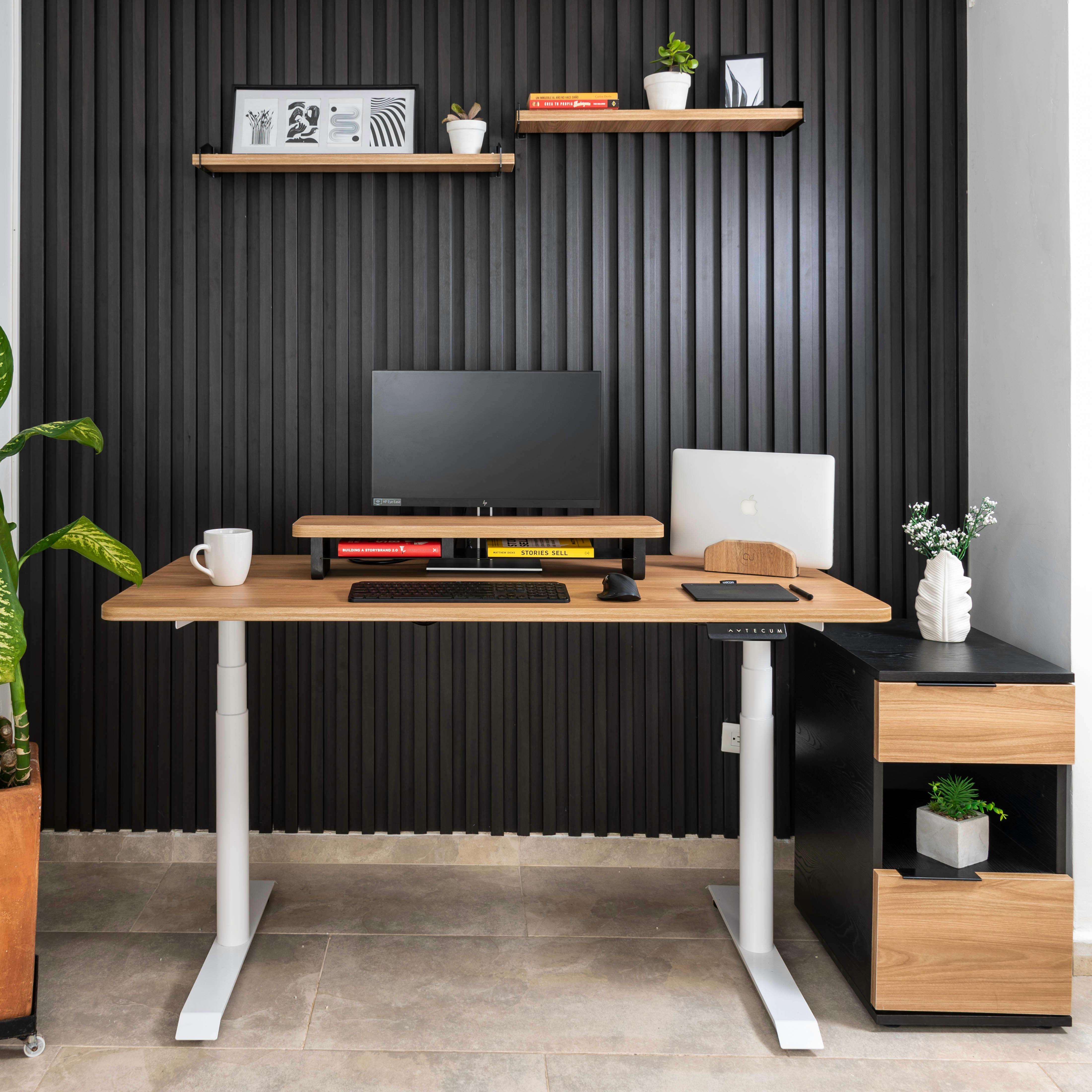 Selecciona la combinación de madera y metal que mejor se adapte a la estética de tu escritorio actual.